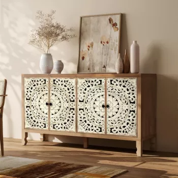 Vintage Carved Wood Accent Cabinet